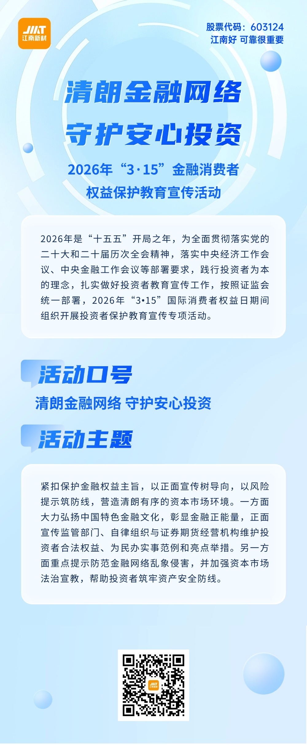 【清朗金融网络 守护安心投资】2026年“3·15”金融消费者权益保护教育宣传活动