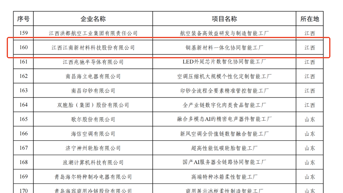 江西江南新材料科技股份有限公司(简称“江南新材”)凭借“铜基新材料一体化协同智能工厂”项目入选,荣膺国家卓越级智能工厂称号,再度为江西智能制造版图增添荣耀篇章!